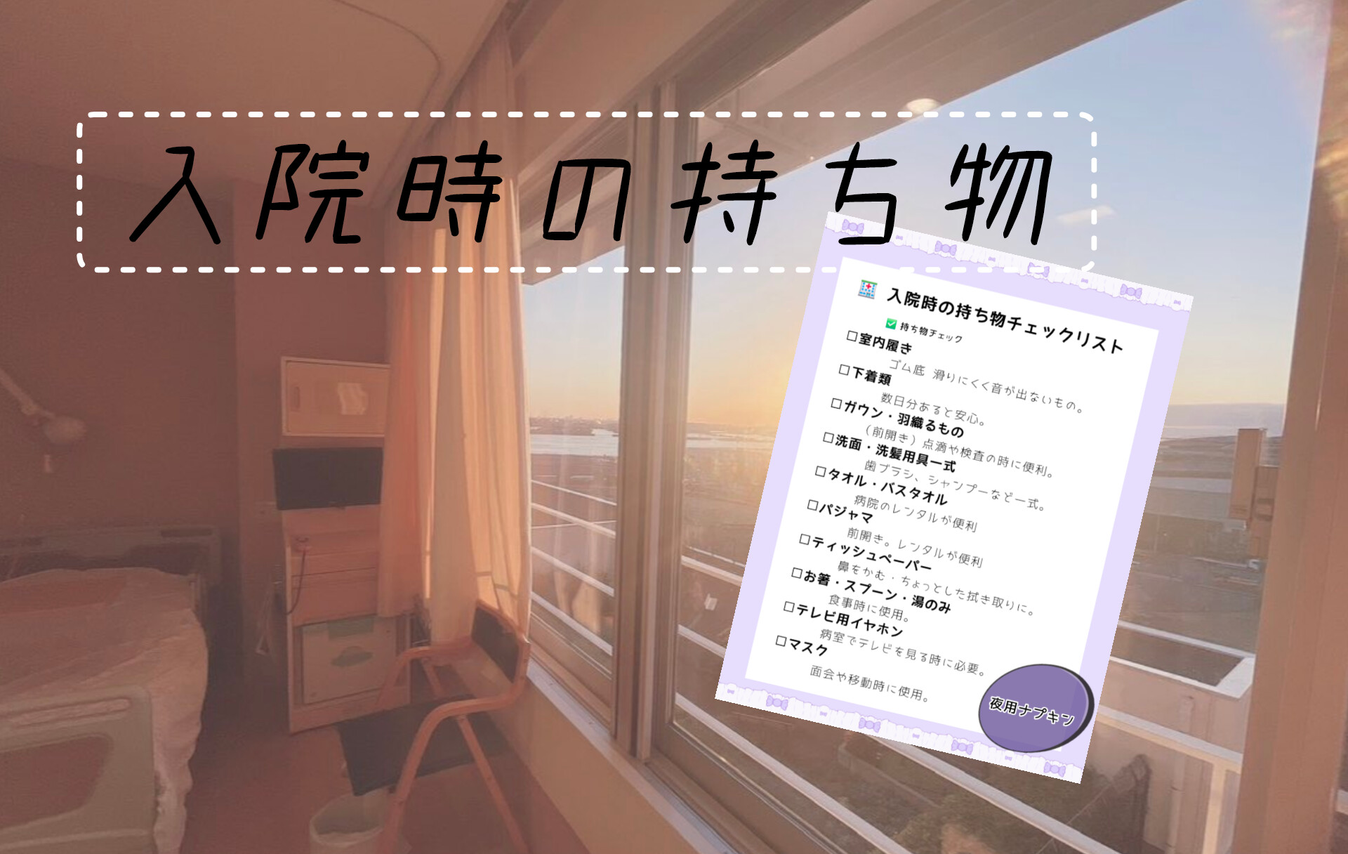 入院生活を少しでも快適にするための参考にしてもらえたら嬉しいです。