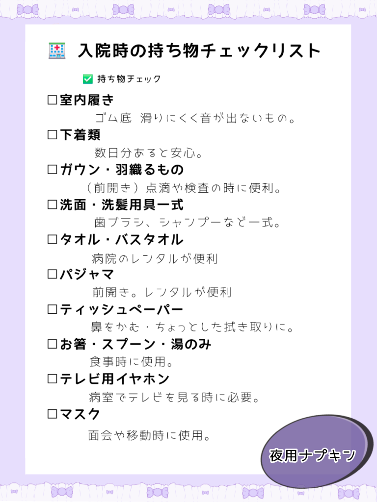 👜入院時の持ち物リスト
