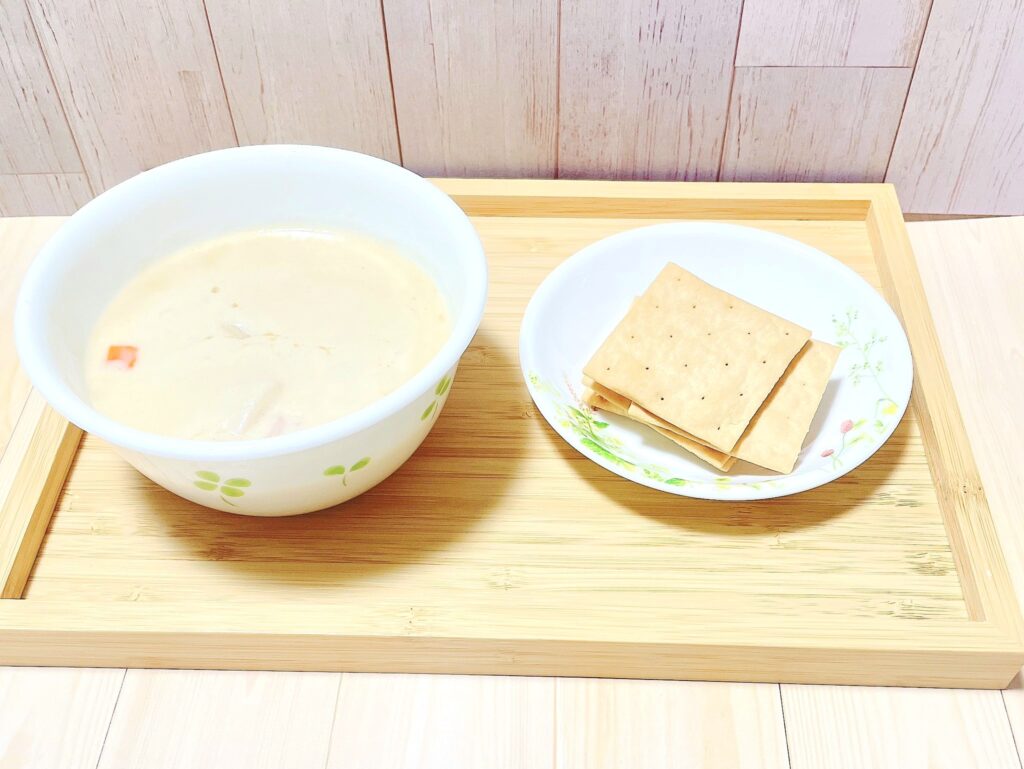 - 夕食:ホワイトシチューとクラッカー