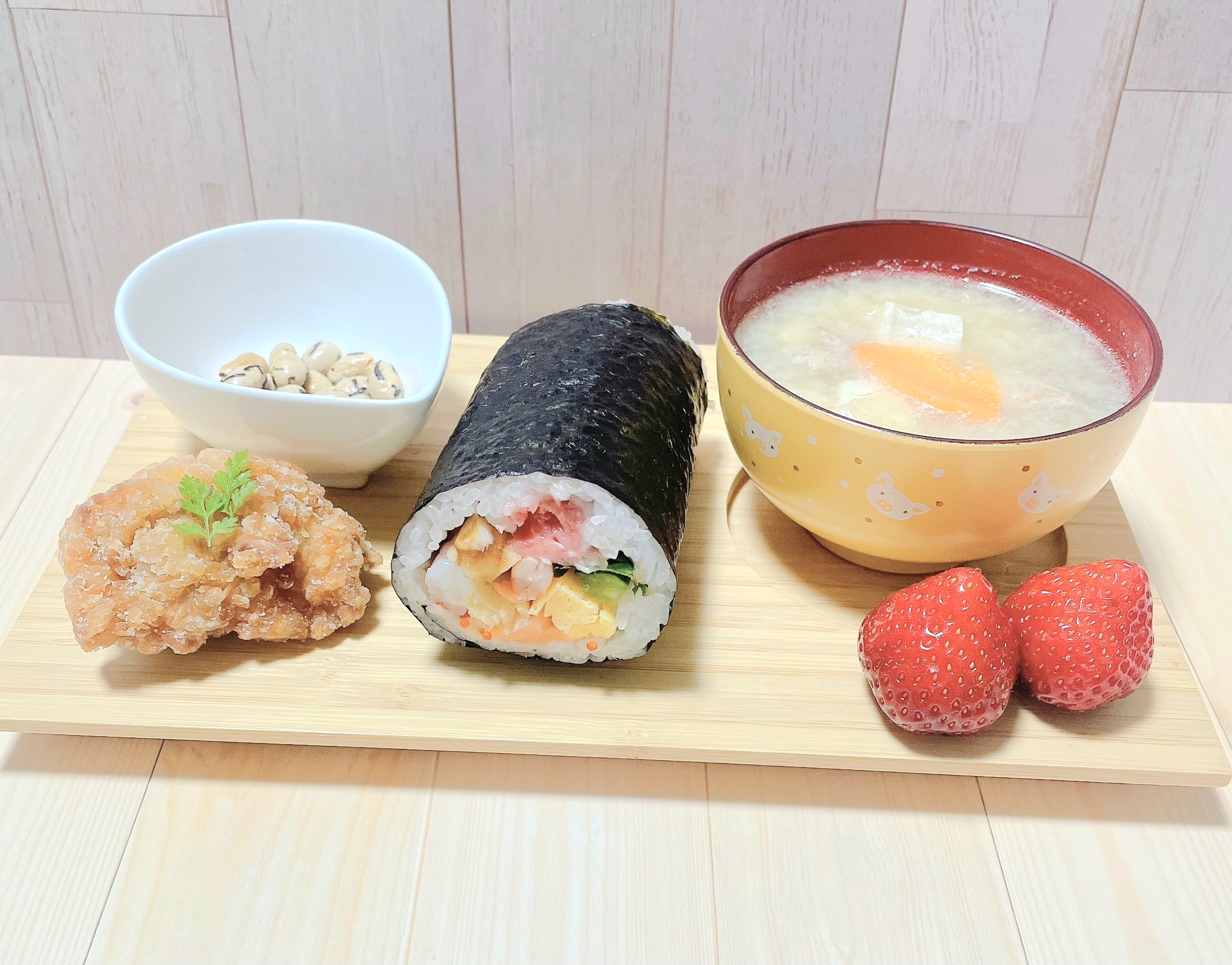 恵方巻きが思いのほか大きかったので(写真では小さく見えますが)