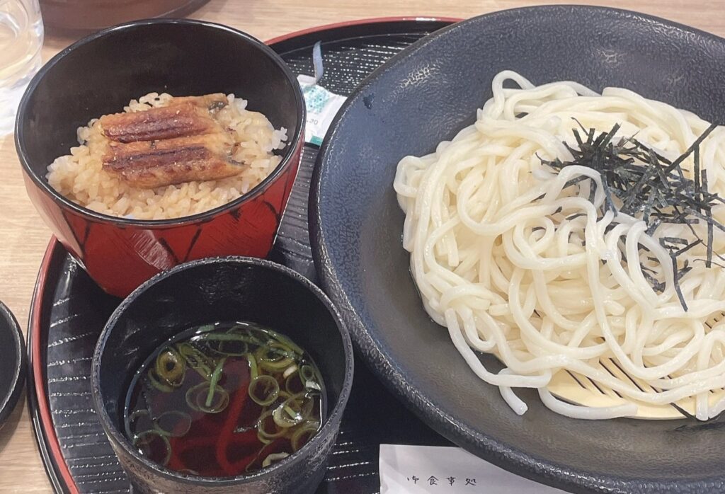 宮島の中のお店で、ざるうどんとミニ穴子丼のセットをたべました。
