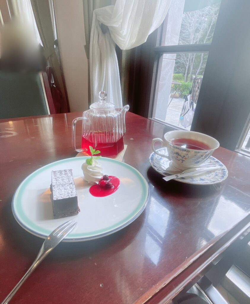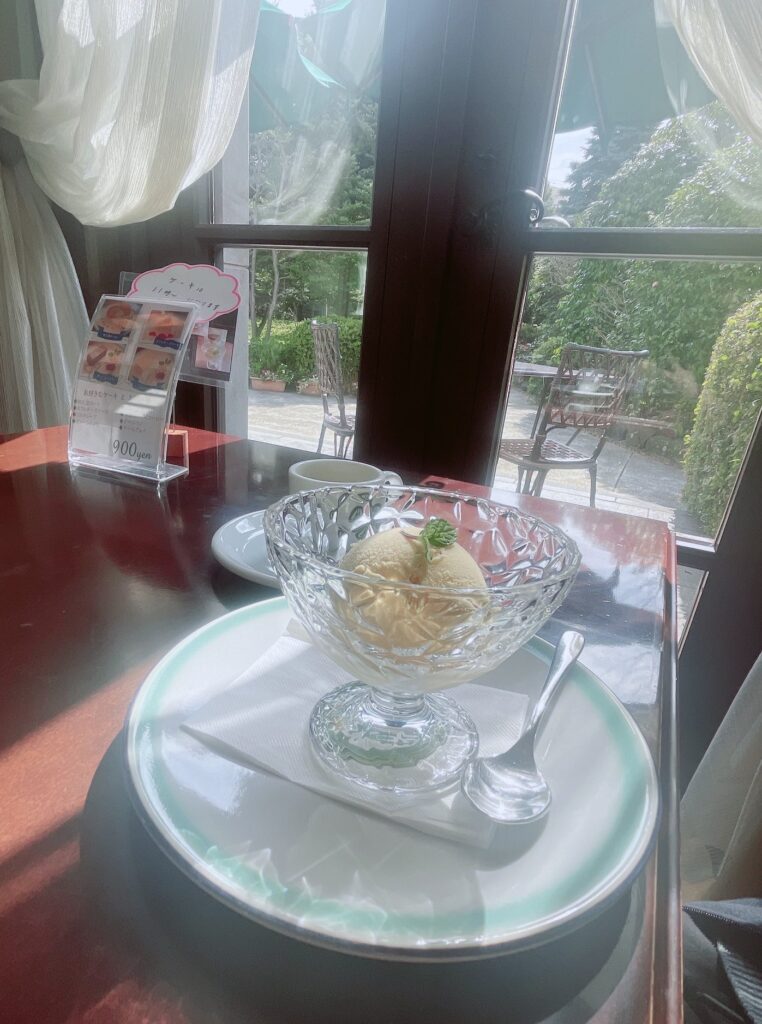 注文してすぐに中庭に出て、1周してみました。たぶん50mもないですが、それでもどこか自然の中の洋館に来たみたいで、とても素敵でした。かわいくて写真撮りまくりました(笑)。
