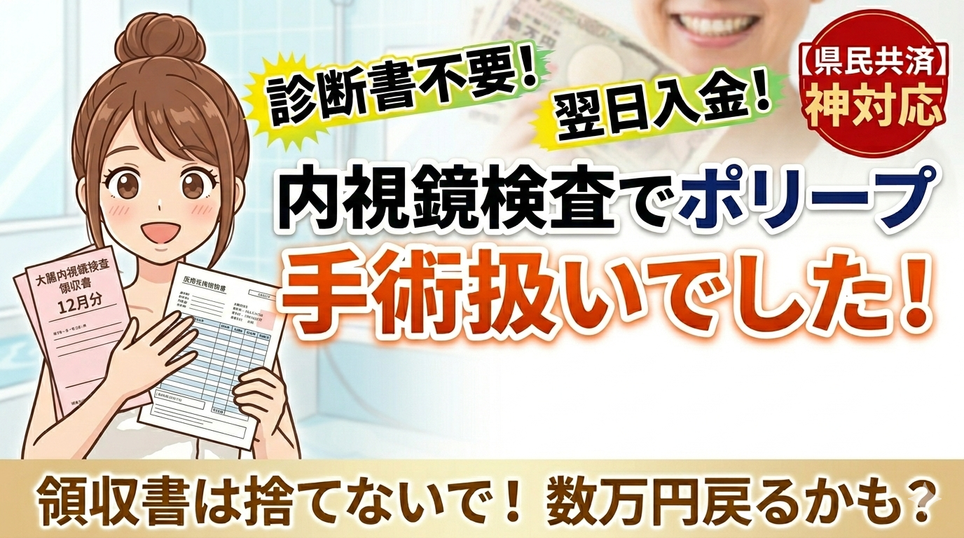 • ポリープ切除をした場合:手術」扱いなので共済金が出る。
