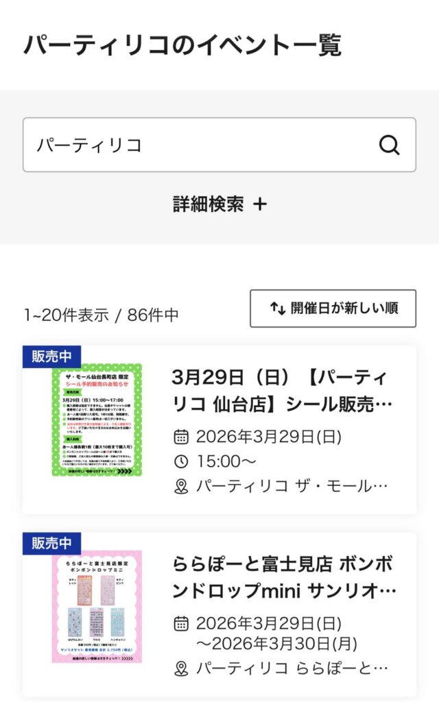 検索窓には「パーティリコ」もしくは